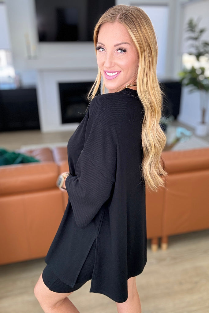 The BEST oversized tee + biker set that you've ever put on your body is here! Custom designed for One Eleven North, this high end ribbed fabric drapes beautifully on your body. The drop shoulder and side slits add interest to the top while the wider elastic waistband fits oh-so-comfortably. Available in three great colors - you're going to want to grab every single one!